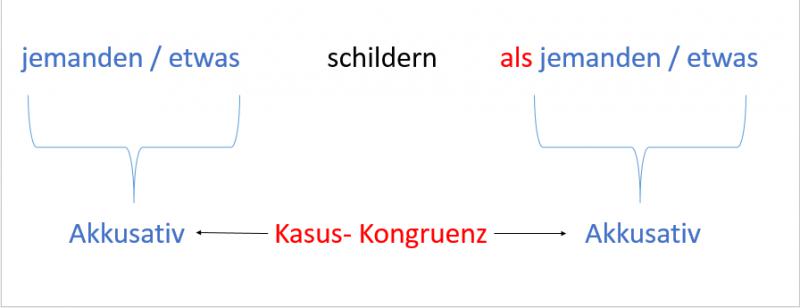 Hierzu lohnt es sich, das Prädikat im untergeordneten Satz (schildert) genauer zu analysieren. Wenn wir die Valenz des Verbs